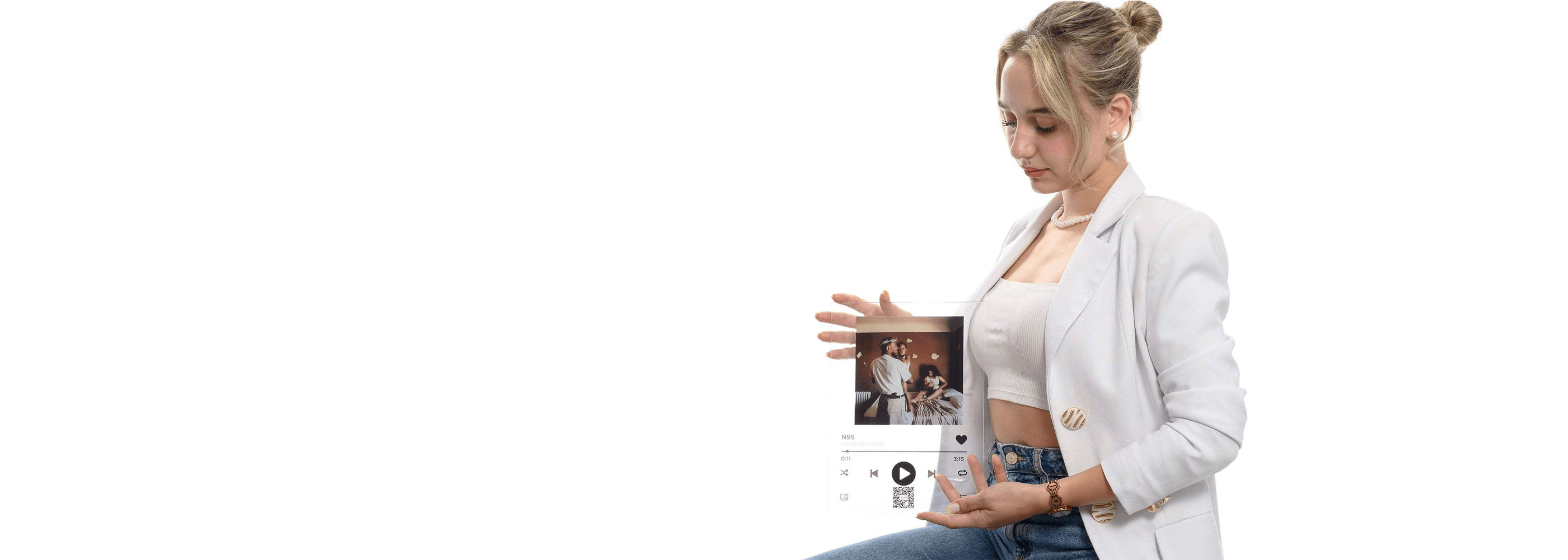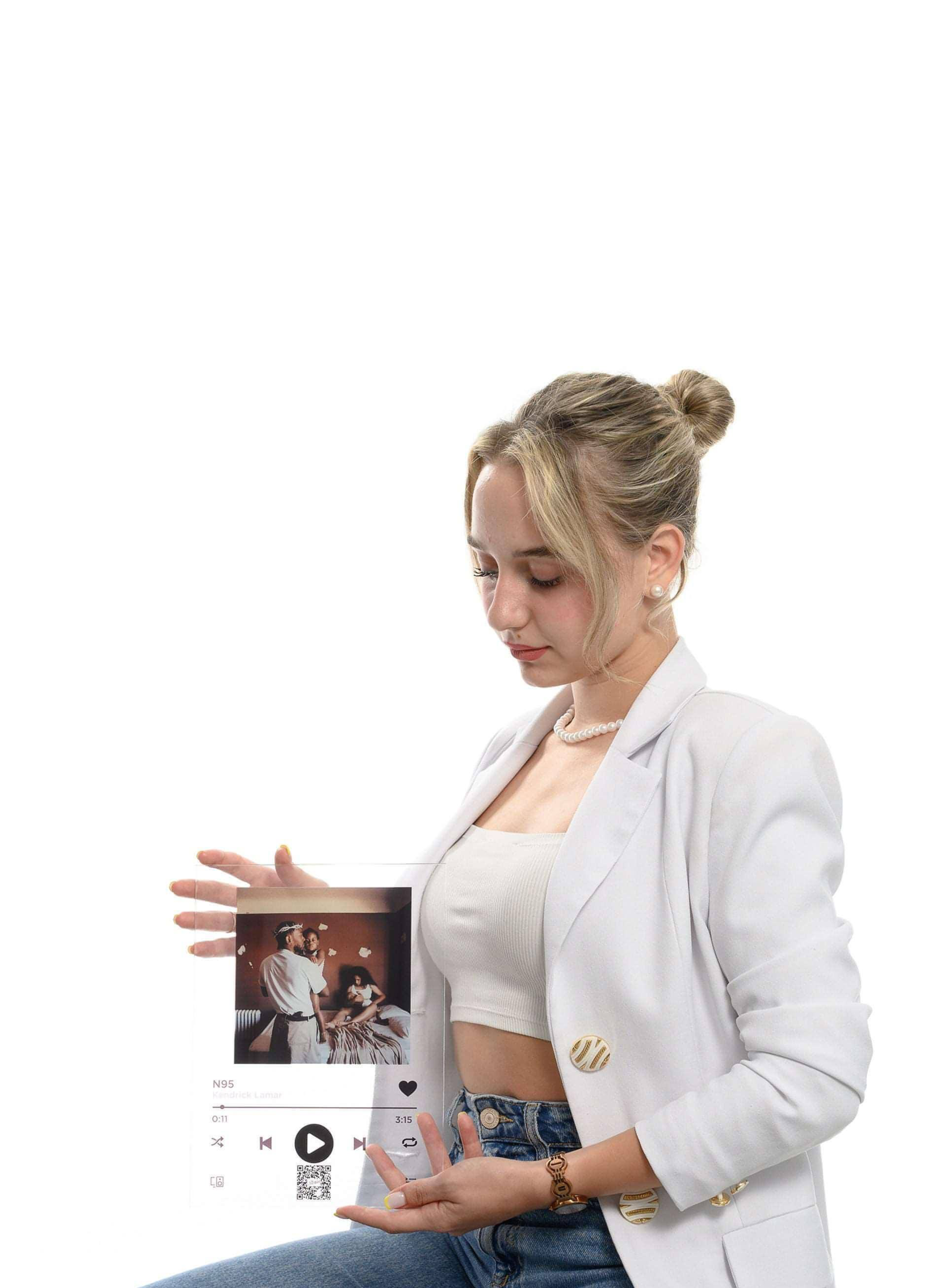 Събрах всичките ключеви моменти с любимата в едно видео и го изпратих на music glass. Подарих плочата на приятелката ми и тя се разплачи от щастие!!
